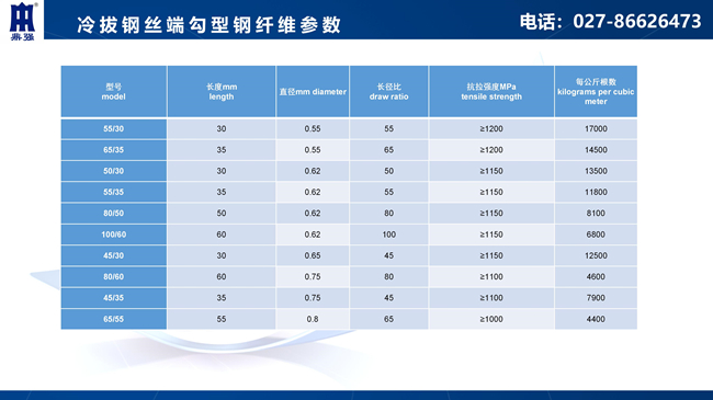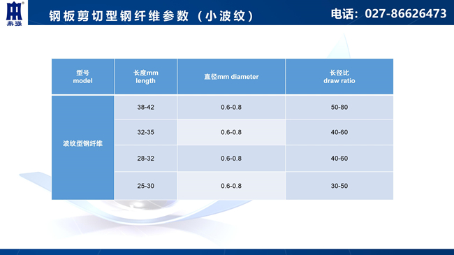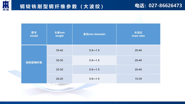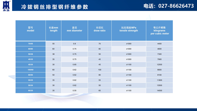 钢纤维是一种新型纤维,乱向分布的钢纤维能够有效地阻碍混凝土内部微裂缝的扩展及宏观裂缝的形成,显著地改善了混凝土的抗拉、抗弯、抗冲击及抗疲劳性能,具有较好的延伸性。钢纤维产品包括镀铜微丝型钢纤维、端勾型钢纤维、铣削型钢纤维、排型钢纤维、剪切型钢纤维等。