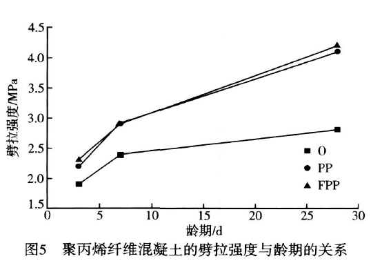 AM等人的研究结果表明聚丙烯纤维的掺入只改善混凝土的抗冲击性能,对抗压和抗折性能影响不大。随着商品混凝土的迅速发展,混凝土不但要满足强度要求,同时需要具有良好的施工性能,即适宜的坍落度值,较低的坍落度损失以及较低的泌水率等。聚丙烯纤维掺入到混凝土中对于混凝土的工作性的影响存在不同的观点。另外粉煤灰等工业肥料与纤维混凝土的匹配性也有待深入研究。