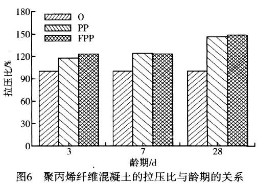 如ZOLLO等人于1984年进行了普通混凝土和聚丙烯纤维混凝土的抗压强度、劈拉强度及抗折强度对比实验结果表明,随着纤维体积率的增加,抗压强度降低而劈拉强度和抗折强度有所提高,随后几年内其他研究者所得实验结果基本与上述结果类似。