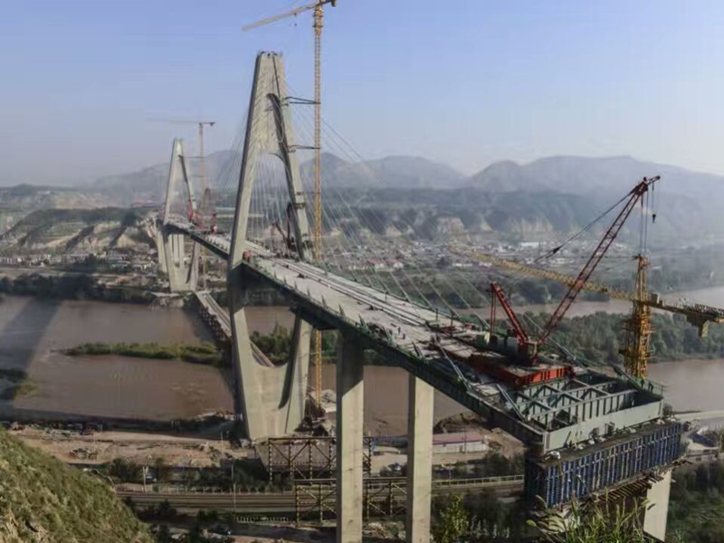 西固黄河大桥是兰州南绕城高速公路重点控制性工程,跨越黄河、兰新铁路和109国道,穿越兰州二级水源保护区。大桥全长1003米,其中主桥长714米,设计为双塔三跨半漂浮体系钢混结合梁斜拉桥,主跨360米,桥面宽27.5米,主塔采用菱形钢筋混凝土结构,南索塔高151米,北索塔高147米。项目合同额4.9亿元,合同工期33.5个月。