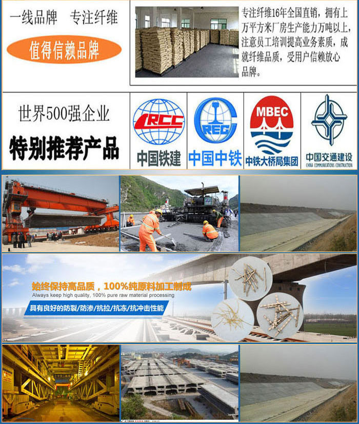 温馨提示:一般地来说,国家重点工程建设的设计图中有时使用抗裂纤维这个泛词,但没有很明确的标注何种材料纤维。那么您也可以根据你的客户需要,选择相对应的纤维或者欢迎拨打鼎强纤维热线027-86626473咨询。根据不同的原材料,抗裂纤维的价格也不同。大家只需要根据设计图纸的要求,在下面就能找到您真正需要的抗裂纤维!!!